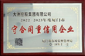 - 集團(tuán)榮獲“2022-2023年度廈門(mén)市守合同重信用企業(yè)”榮譽(yù)稱(chēng)號(hào) 2024.11.19